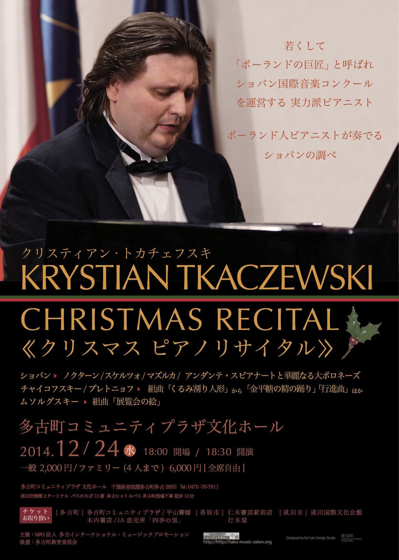 若くして「ポーランドの巨匠」と呼ばれ、アメリカ ショパン国際ピアノコンクールを自ら運営している若手ピアニスト、クリスチャン・トカチェフスキー氏が再び来日し、多古町で2度目となるコンサートが開催されました。
