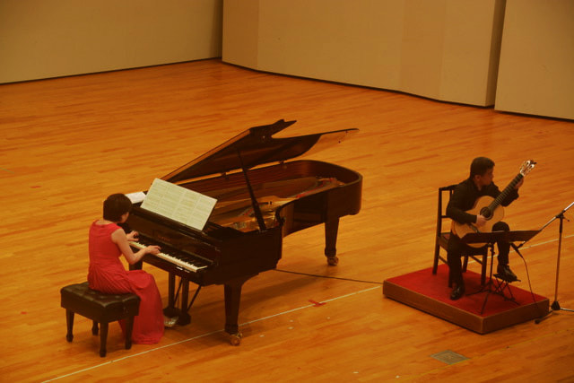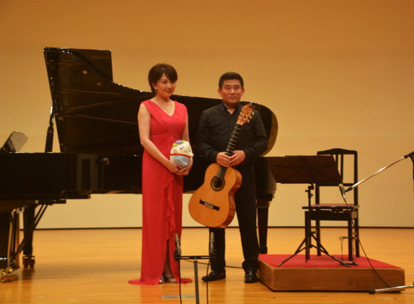 今回はピアニストの村上 和歌子氏とのデュオコンサート。哀愁漂うギターの名曲の数々をピアノと共に演唱して下さいました。