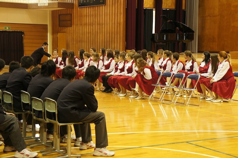 コンサートに先立ち、多古中学校を訪問して中学生と日本の給食を食べながらの交流会や、ミニコンサートも行いました。当日コンサートではチェコの伝統楽曲を中心に、美しい歌声を披露しました。民族衣装に着替えたり、チェコの伝統舞踊の身振り手振りを交えた演奏が聴衆を魅了しました。