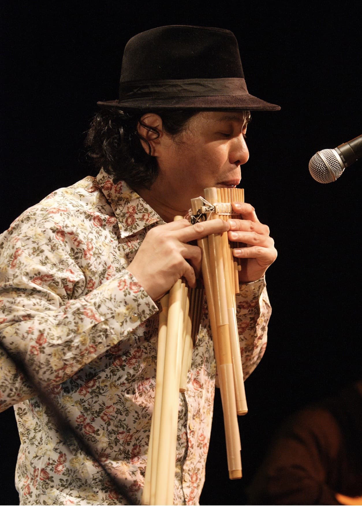 ケーナ、サンポーニャ、ボンボ担当。1969年生まれ、静岡県出身。12才のときにアンデスの音楽フォルクローレに出会いケーナを始める。日本を代表するフォルクローレグループ「MAYA」の1987年創立以来のメンバー。さまざまなジャンルのアーティストとの共演からフリーの即興演奏まで幅広く活動している。これまで4枚のソロアルバム、その他10枚以上のアルバムをリリース。日本では数少ないサンポーニャ・ケーナ奏者としてコンサート活動を行う一方、南こうせつや島倉千代子、KOKIAらのレコーディングへ参加。音楽プロデュース、サンポーニャ等の楽器のワークショップなど幅広く活動しいる。葦工房、balsitaレーベル主宰。
