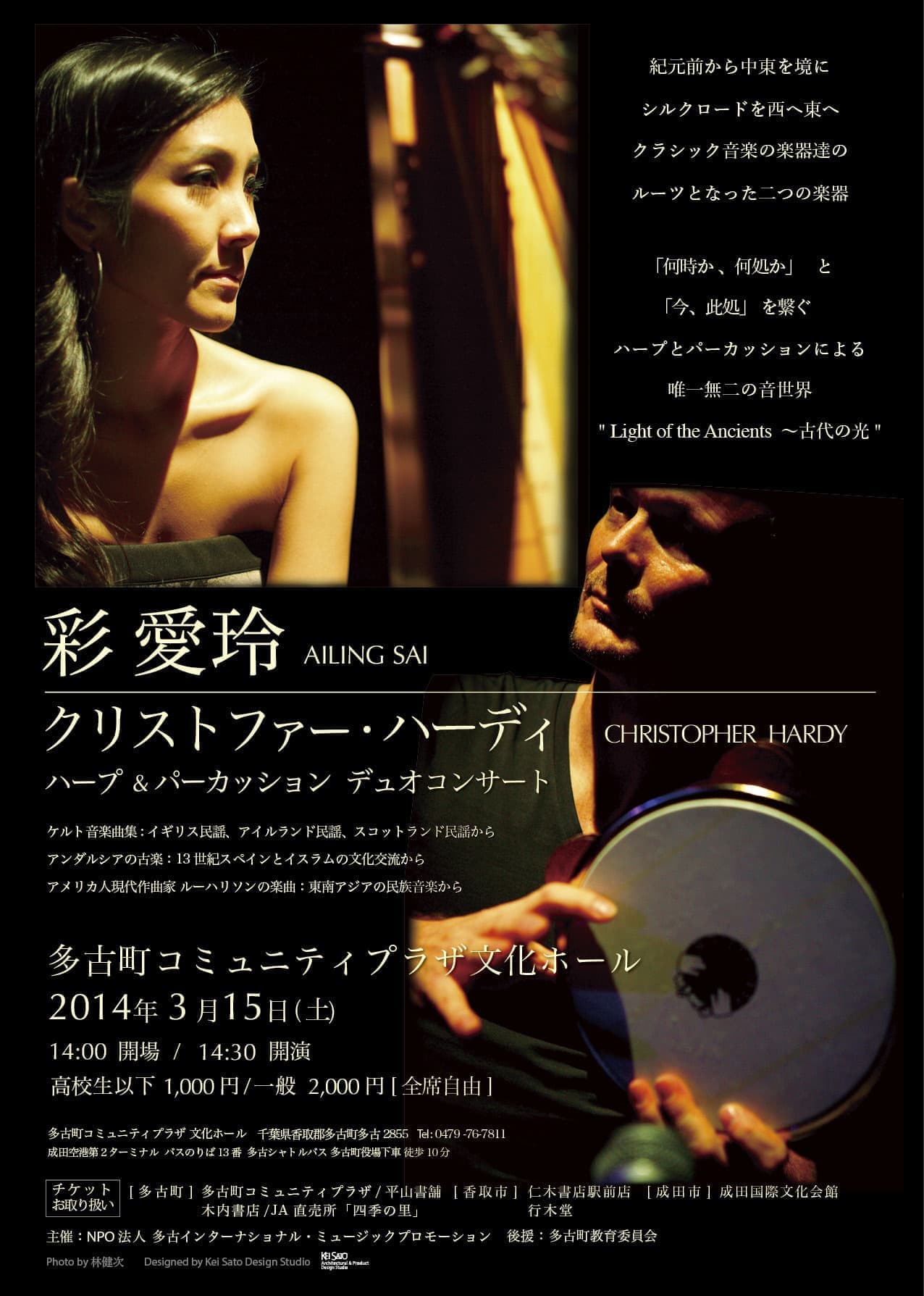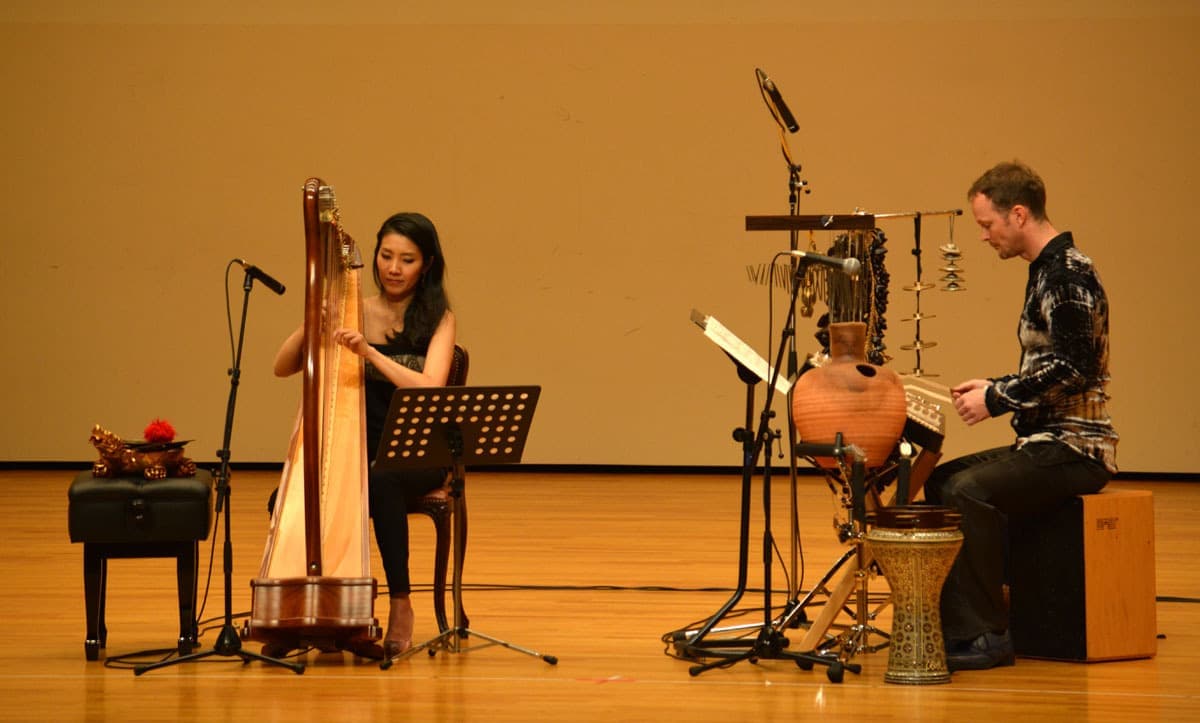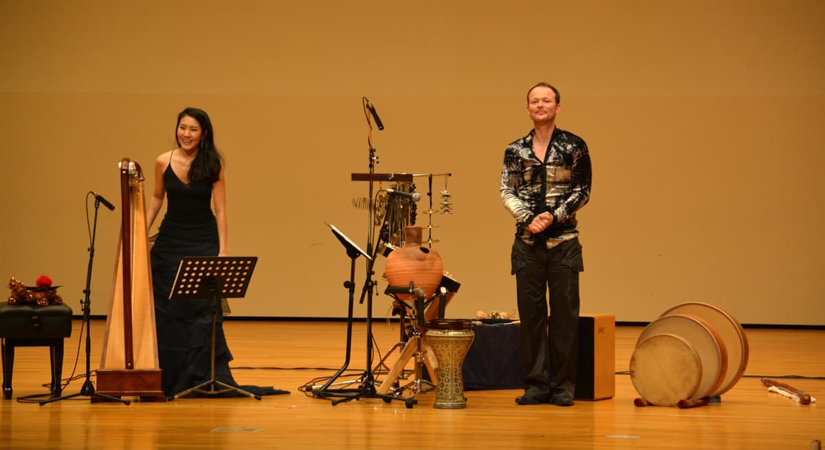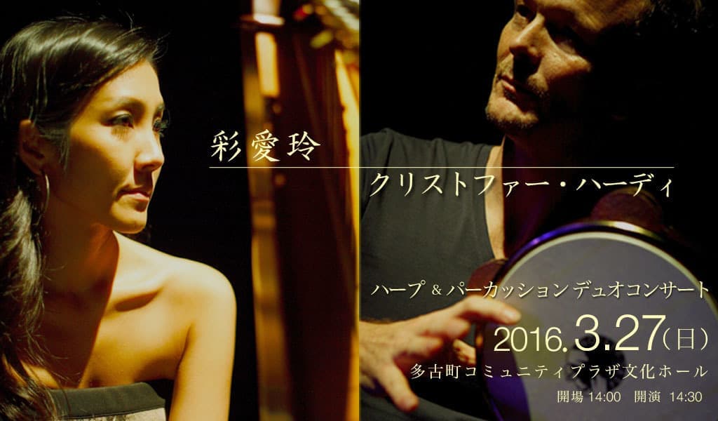 台湾にルーツを持つハープ奏者 彩 愛玲(さい あいりん)と、ノルウェーにルーツを持つパーカッション奏者 クリストファー・ハーディの異色のコラボレーション。