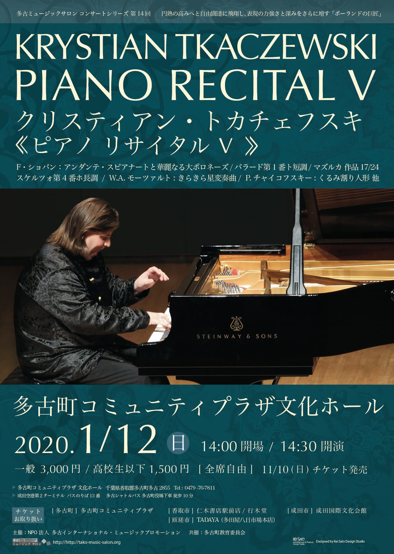 これまで4回にわたり多古町を訪れ、コンサートを開いて下さっているポーランド人ピアニスト、クリスティアン・トカチェフスキー氏。来日のたびに魂のこもったコンサートで聴く者を魅了しています。